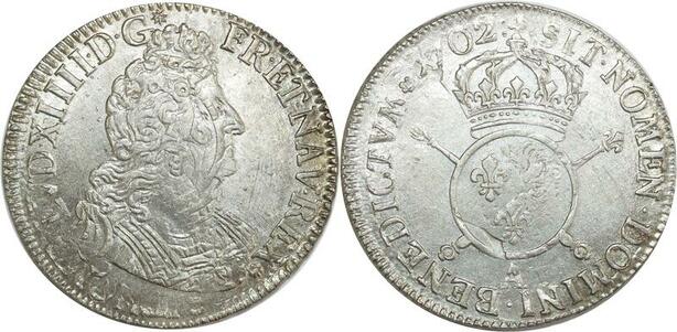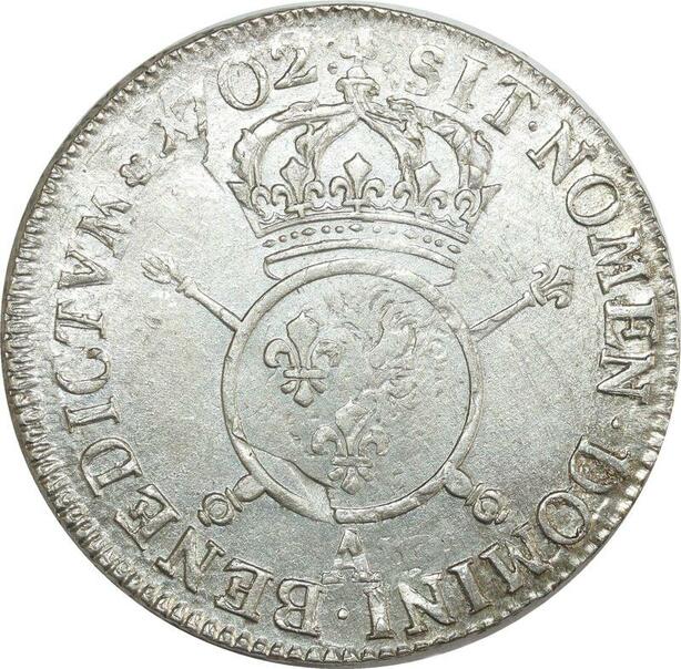 O6131 Rare France 1/2 Ecu Louis XIV aux insignes 1702 A Paris Argent Silver ->M offre