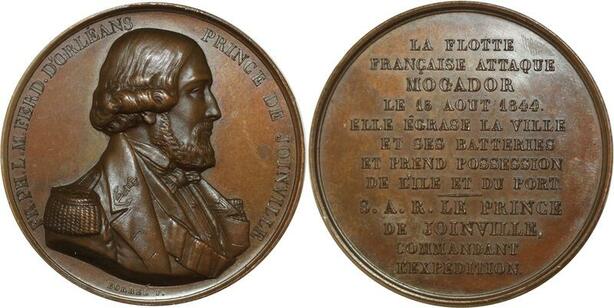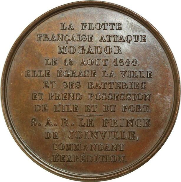 O6590 Rare Médaille Morocco Prise Mogador Essaouira Prince Joinville 1844 SPL