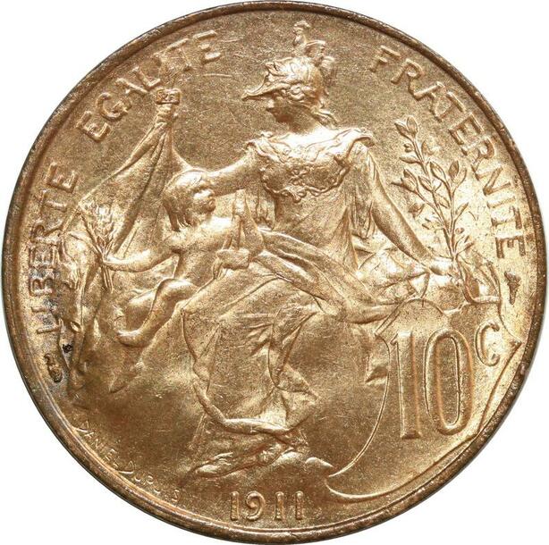 O6610 Rare 10 Centimes Dupuis 1911 FDC Red Luster ! ->Make offer