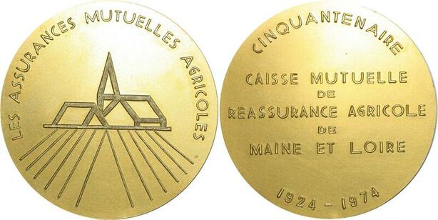 O7210 France Médaille 50 ans Caisse Reassurance Agricole Maine Loire 1924 1974 SUP