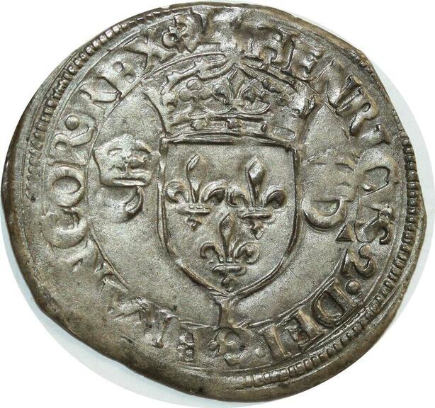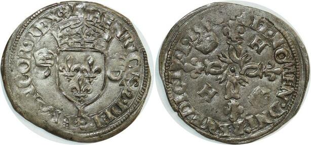 O7420 Rare France Douzain C couronnés Henri II 1550 Bayonne SUP