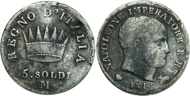 O8002 Italian States 5 Soldi Napoleon 1814 M Milan Silver ->M offer