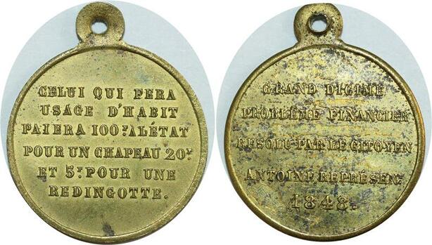 O8200 Médaille Grand Dicime 5 Francs Redingotte Citoyen Antoine 1848 SPL