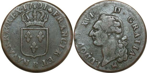 O8380 France Sol Louis XVI 1791 B Rouen 2me sem ->Make offer