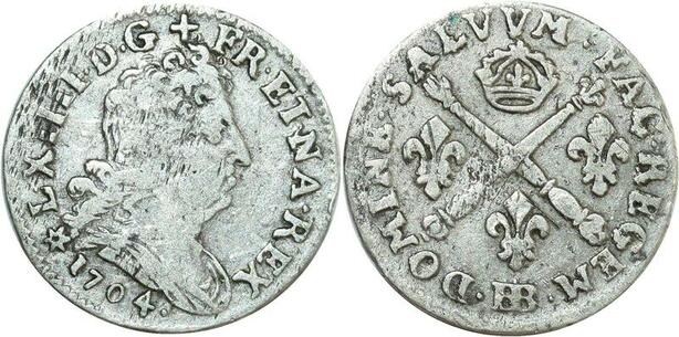 O8472 France 5 Sols aux insignes Louis XIV 1704 BB Strasbourg Argent ->Make offer