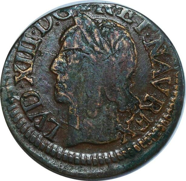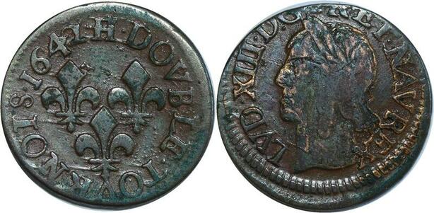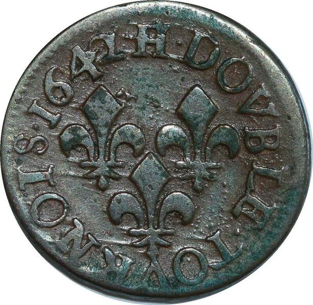 O8531 France Double Tournois P. Warin Louis XIII 1642 H La Rochelle ->Make offer