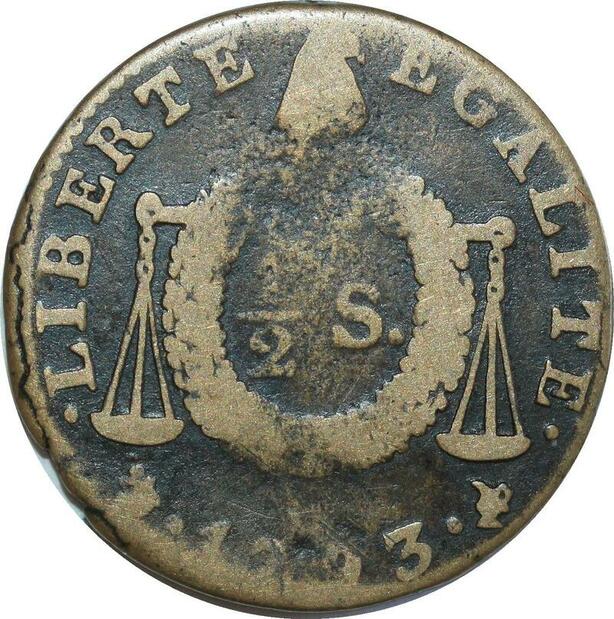 O8570 Très Rare France Convention 1/2 Sol Balances 1793 H La Rochelle ->Make offer