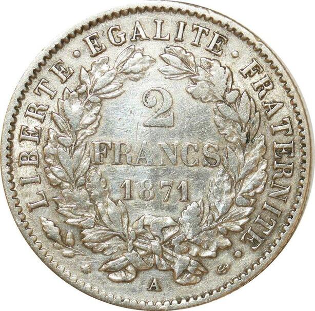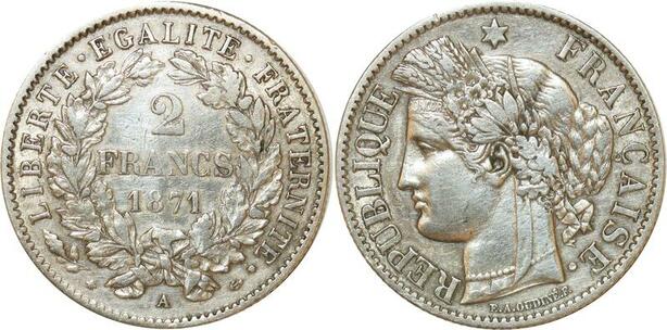 O8662 France 2 Francs Cérès 1871 A Paris Argent ->Make offer