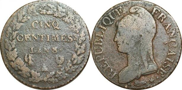 O9370 Directoire 5 Centimes Dupré an 8/7 A Paris ->Make offer