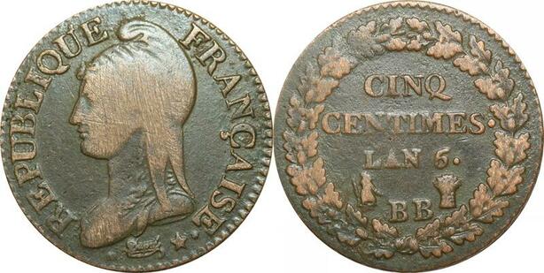 O9381 Directoire 5 Centimes Dupré an 5 BB Strasbourg ->Make offer