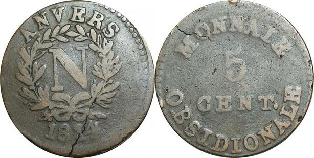 O9410 5 Centimes Anvers 1814 N Frappe Arnesal Marine ->Make offer