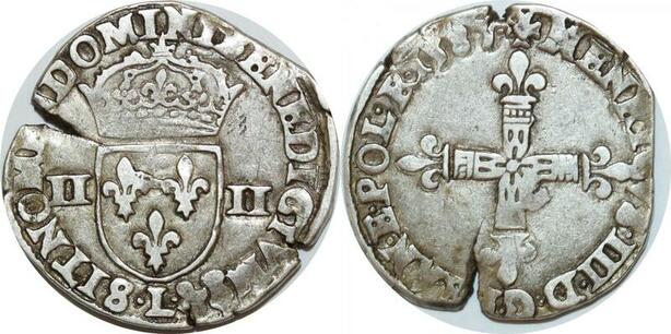 O9620 Rare France 1/4 Ecu Henri III 1587 Bayonne Argent ->Make offer