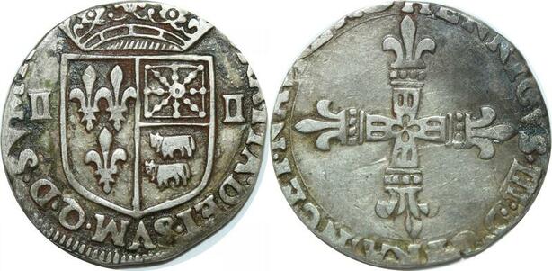 O9630 Rare France 1/4 Ecu Henri III Bearn Moorlaas Flan très court ->Make offer