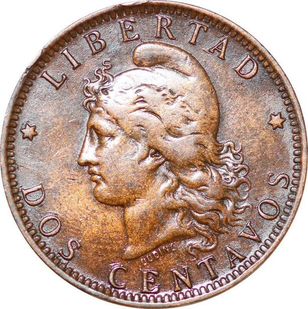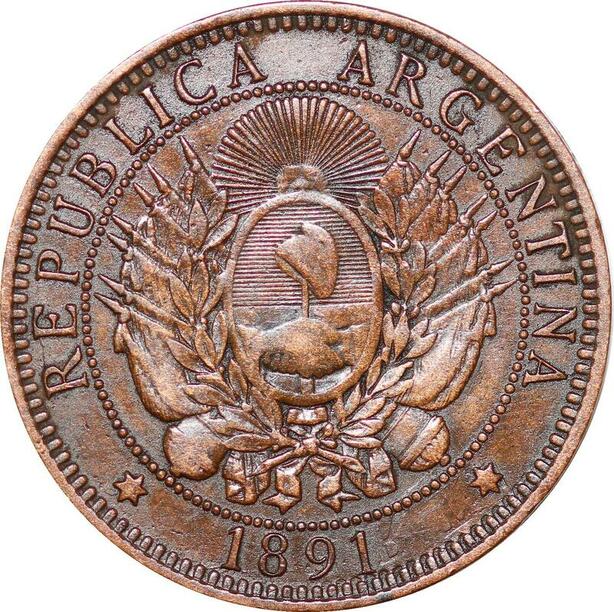 O10000 Argentina 2 Centavos Capped Liberty Head 1891 AU -> Make offer