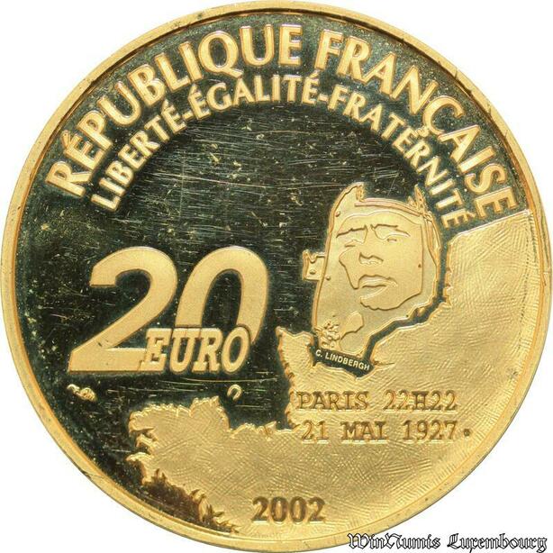 S391 United States 20 euros Lindbergh Paris New York St Louis 1927 2002 Or Gold Proof