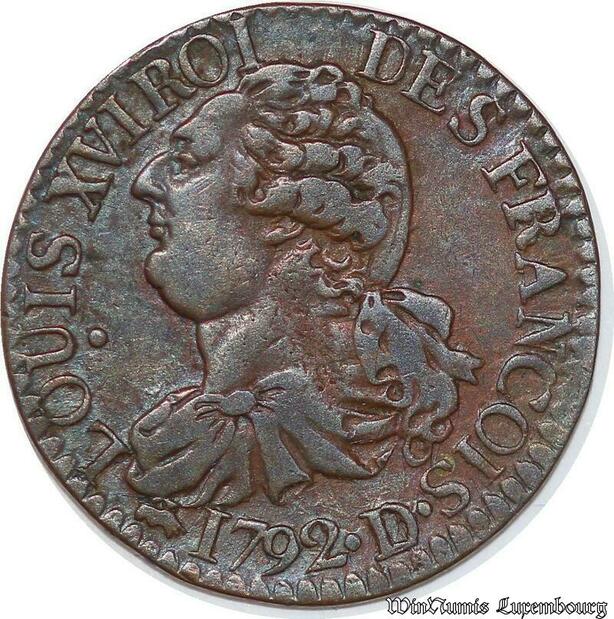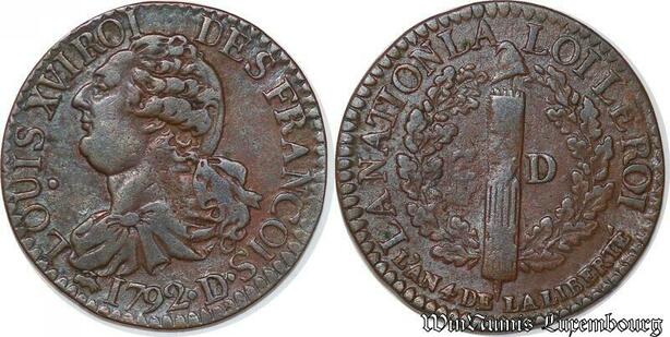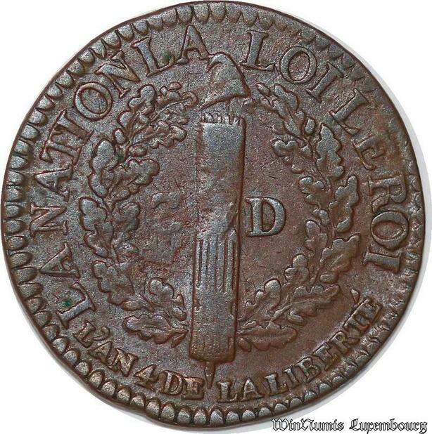 S717 France Deniers Constitution 1791-1792 An 4 D Lyon François SUP