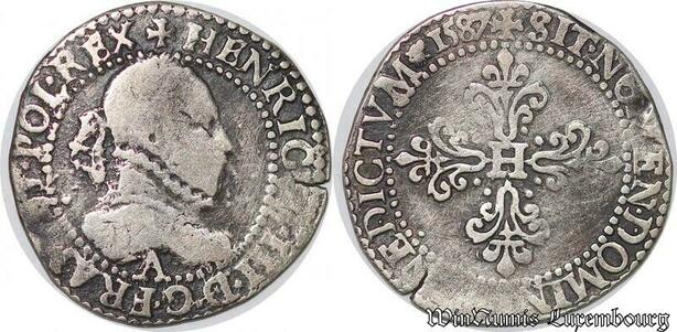 S4152 Rare France Demi-Franc Henri III Au col Gaufré 1587 A Paris Silver >M Offer