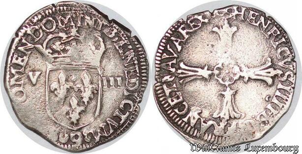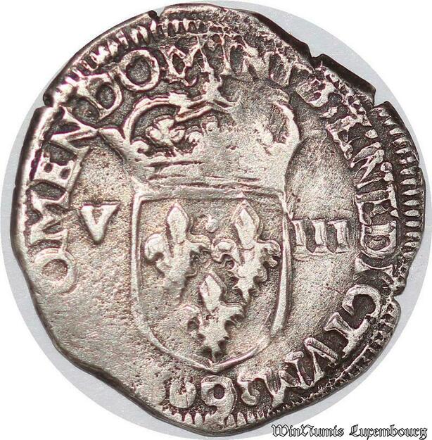 S4159 Rare France 1/8 Ecu à la croix de face 1609 9 Rennes Silver