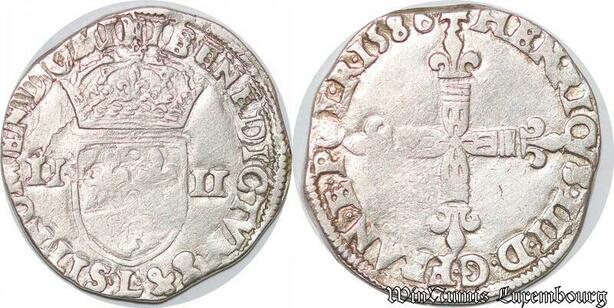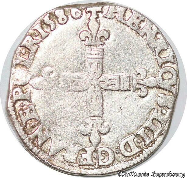 S4168 Rare France 1/4 écu Croix de face Henri III 1588 L Bayonne Silver - Faire Offre