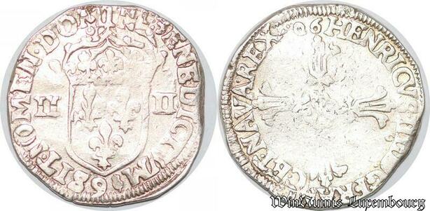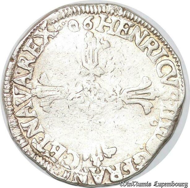 S4170 Rare France 1/4 écu Flotté Double Frappe Henri IV Le Grand 1606 9 Rennes Silver