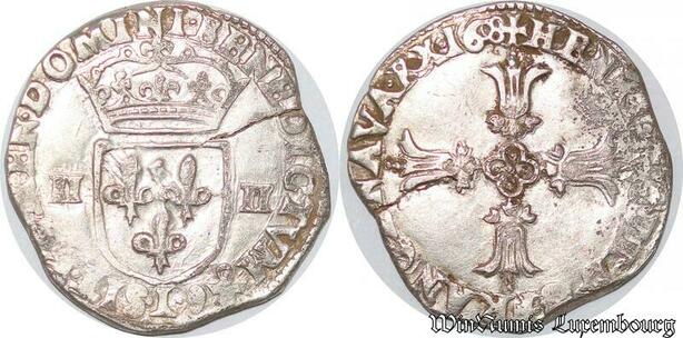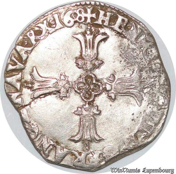 S4171 Rare France 1/4 écu Croix feuillue de face Henri IV 1608 L Bayonne Silver SUP !