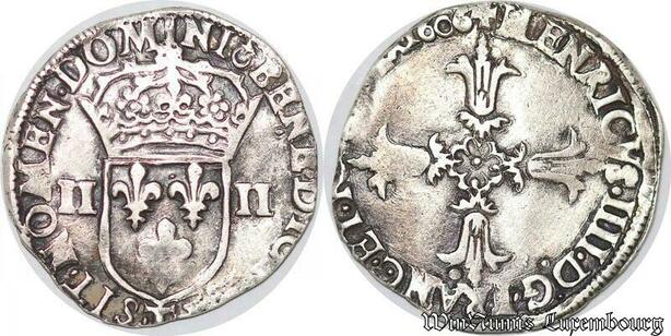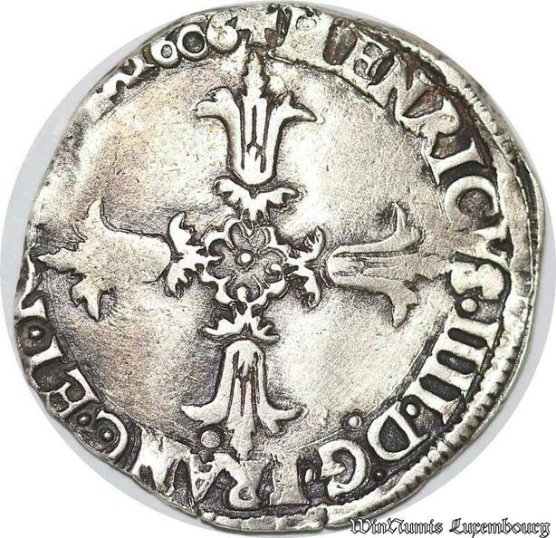 S4174 Rare France 1/4 Ecu Croix feuillue face Henri IV Le Grand 1606 T Nantes Silver
