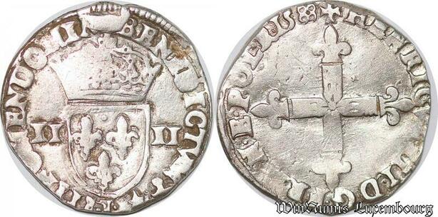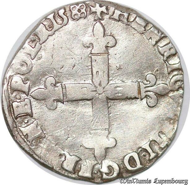 S4175 Rare France 1/4 Ecu Croix feuillue face Henri IV 1588 L Bayonne Silver Surplus