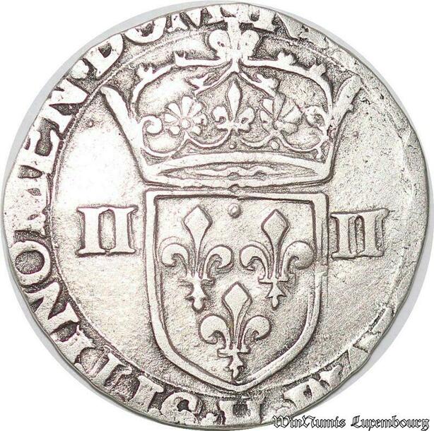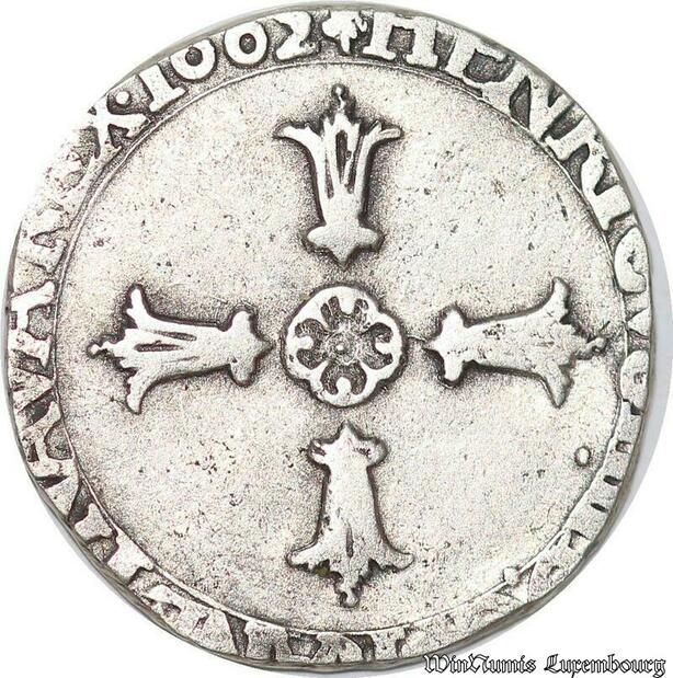 S4179 Rare France 1/4 écu Croix feuillue de face Henri IV 1602 H La Rochelle Silver