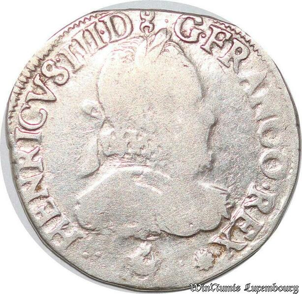 S4186 Rare France Teston Henri III Buste col plat laure barbu 1575 K Bordeaux Silver