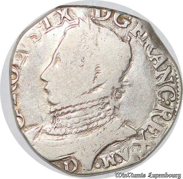 S4187 Rare France Teston Charles IX Buste lauré et cuirassé 1575 D Lyon Silver