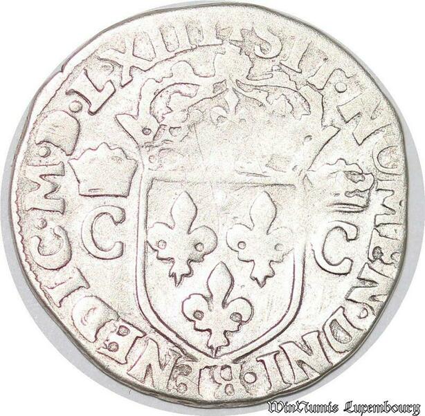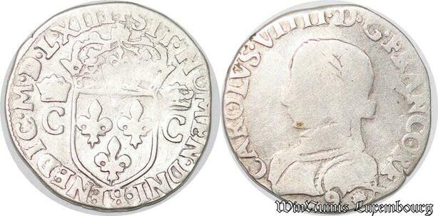 S4192 Rare France Demi Teston Henri III nom Charles IX 2e type 1563 9 Rennes Silver