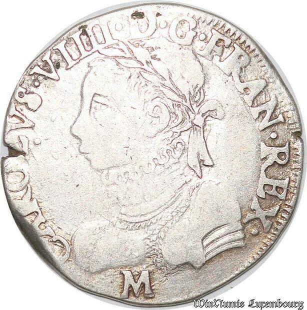 S4201 Rare France Teston Charles IX 10e type 1574 M Toulouse Silver Frappe Médaille