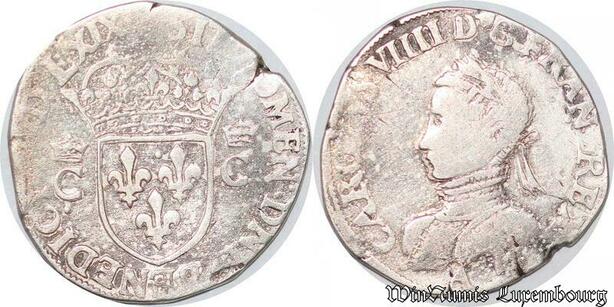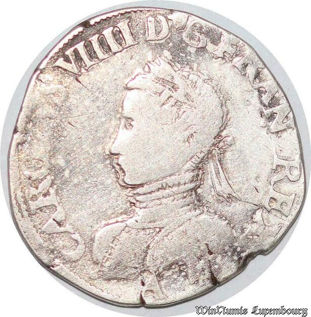 S4203 Rare France Teston 2e type Charles IX point 18e au revers 1569 A Paris Silver