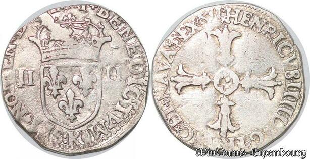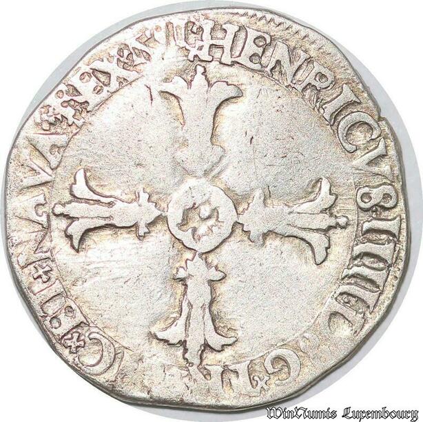 S4219 Rare France 1/4 Ecu Henri IV Le Grand croix feuillue de face K Bordeaux
