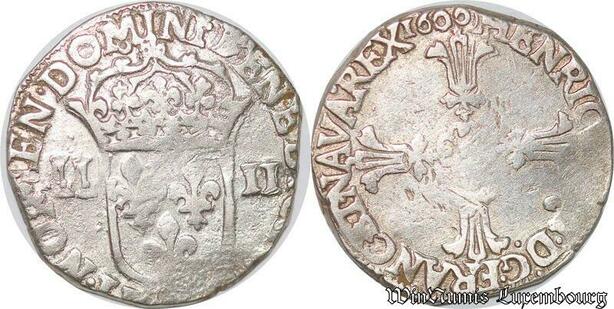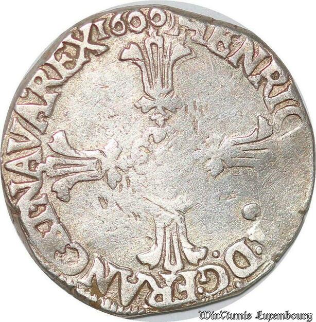 S4220 Rare France 1/4 écu Henri IV Le Grand croix feuillue de face 1600 Silver