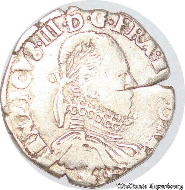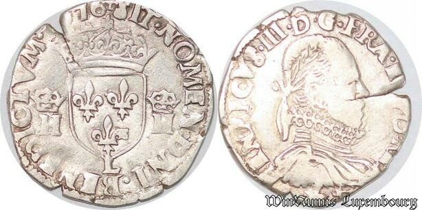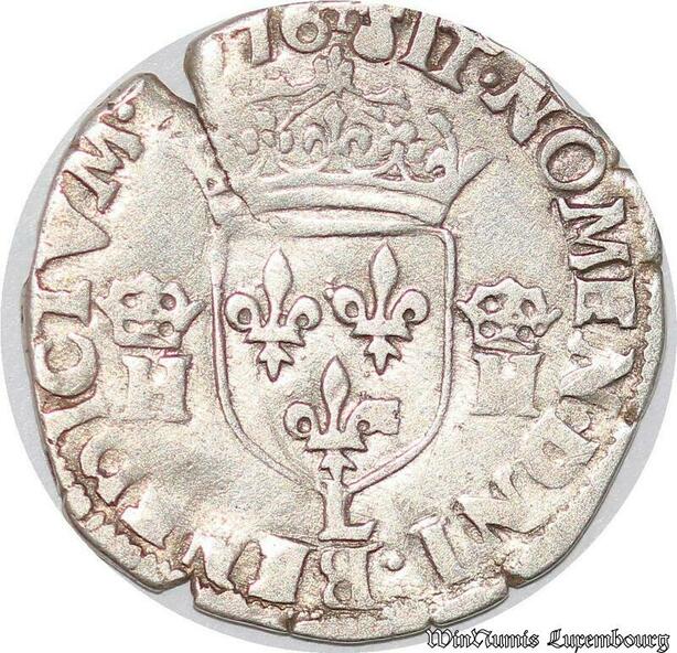 S4222 Rare France 1/2 Teston 3ème type Henri III Buste col plat 1576 L Bayonne Silver