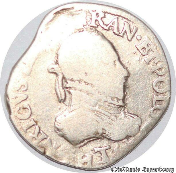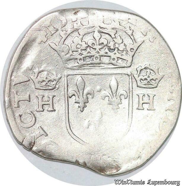 S4223 Rare France Teston Henri III Buste au col plat lauré et barbu à droite T Nantes
