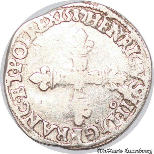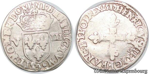S4233 Rare France 1/8 Ecu Croix De Face Henri III 1587 9 Rennes Silver