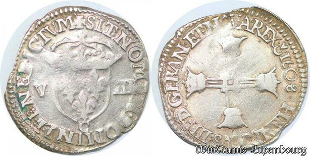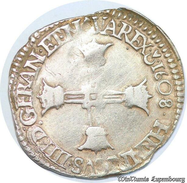 S4237 Rare France 1/8 Ecu Croix couronnéeHenri IV 1608 C Caen Silver >M offer