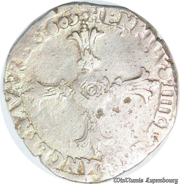 S4239 Rare France 1/4 Ecu Croix Feuillue Henri IV 1603 N MontpellI Silver >M offer