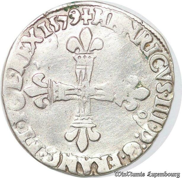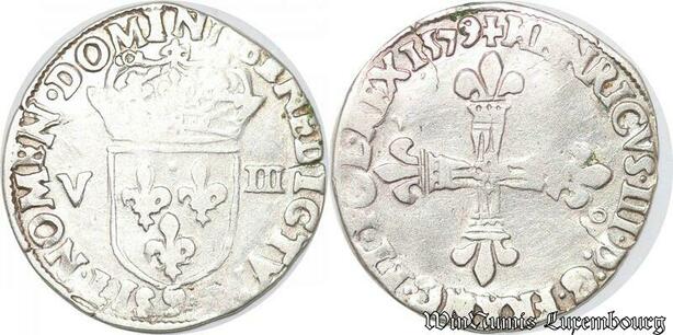 S4249 Rare France 1/8 Ecu Croix De Face Henri III 1579 9 Rennes Silver ->M offer