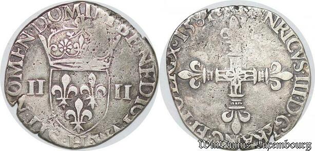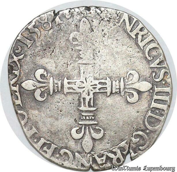 S4252 Rare France 1/4 Ecu Croix De Face Henri III 1581 H La Rochelle Silver >M offer