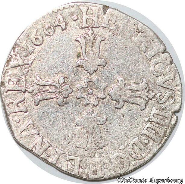 S4258 Rare France 1/4 Ecu Croix Feuillue Henri IV 1604 H La Rochelle Silver >M offer