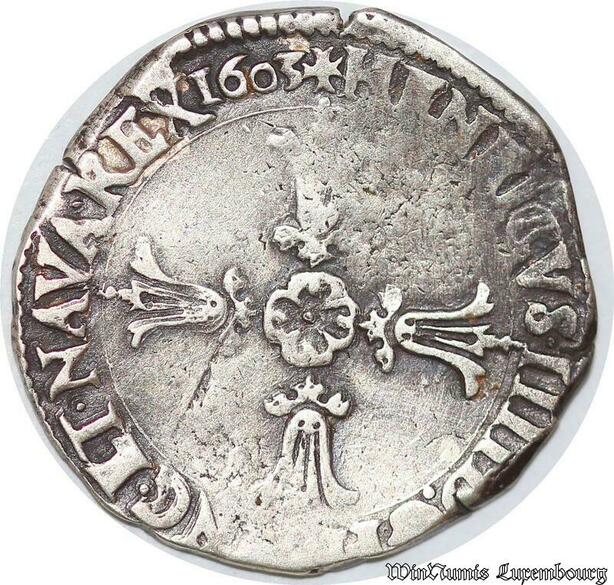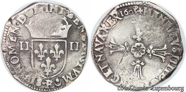 S4260 Rare France 1/4 Ecu Croix Feuillue Henri IV 1603 F Angers Silver - Faire Offre