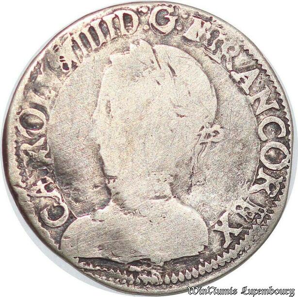 S4298 Rare France Demi Teston Charles IX 1562 H La Rochelle Argent Silver