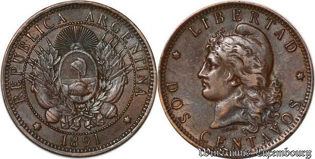 S4362 Argentine 2 Centavos 1891 Libertad AU - Faire Offre