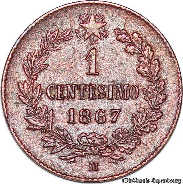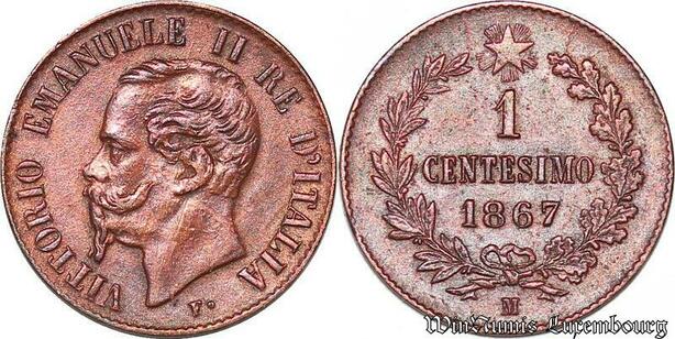 S4374 Italia Centesimi Vittorio Emanuele II Roi d'Italy 1867 M Milano AU