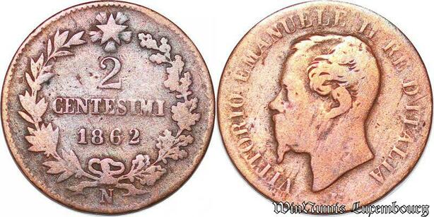S4375 2 Centesimi Vittorio Emanuele II Roi d'Italy 1862 N Naples - Faire Offre