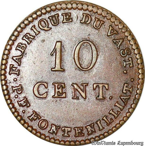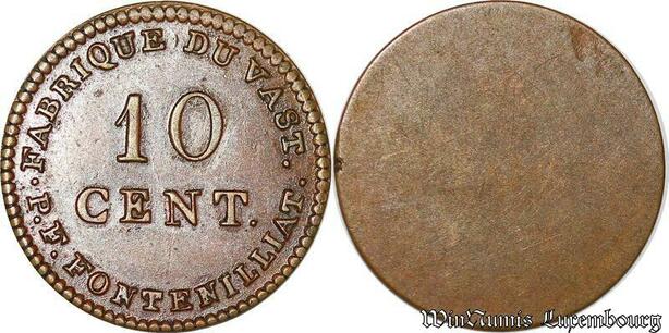 S4384 Rare France 10 Centimes Louis XVIII Uniface Fabrique Vast Fontenilliat SPL