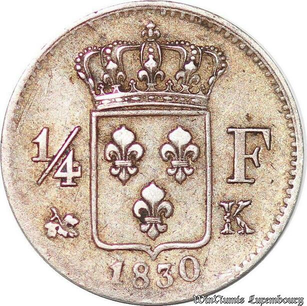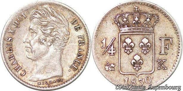 S4398 Rare France 1/4 Franc Charles X 1830 K Bordeaux Silver SUP >M offer